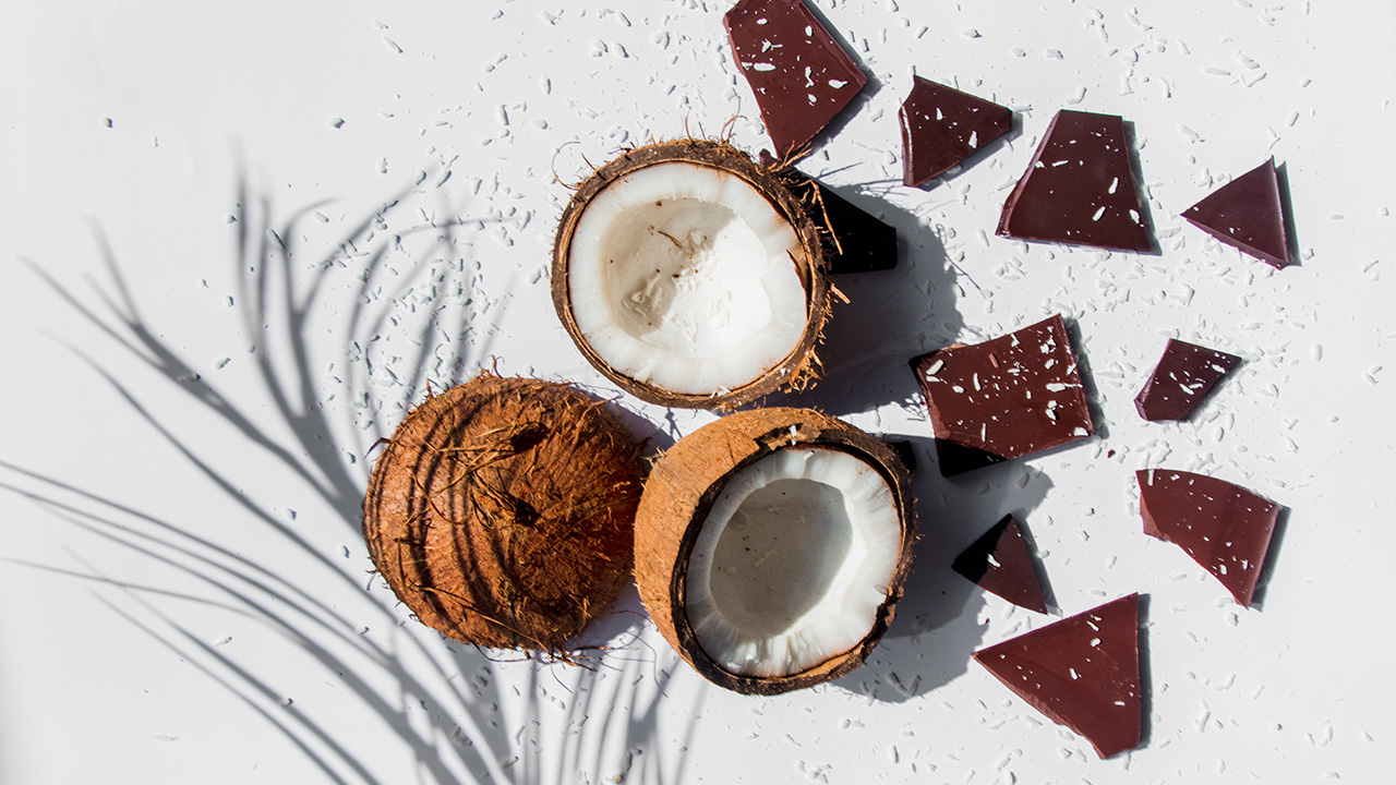 Kokosraspel* (37%), Rohrzucker*, Kakaobutter* (21%), Inulin*, Reisglukosesirup* getrocknet, Emulgator: Sonnenblumenlecithine*; Meersalz. *aus kontrolliert biologischem Anbau. Kann Spuren von SCHALENFRÜCHTEN und MILCH enthalten.